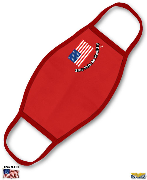 Our cloth face masks are made in the USA from breathable 100% cotton (except our US Flag Face Mask, which is made from an anti-microbial polyester sublimation material) and features single-needle ribbed binding, anti-bacterial coating, and comfortable ear loops; hand wash/air dry. Check out our full selection in our Protective Masks, Scarves, and Wraps Collection.