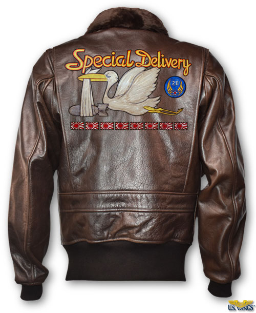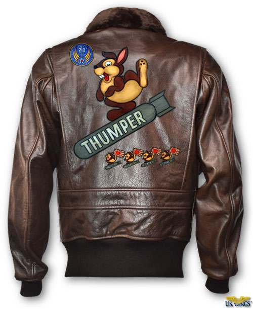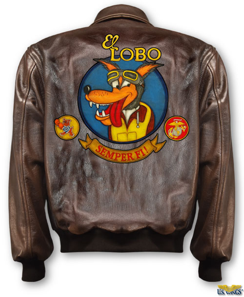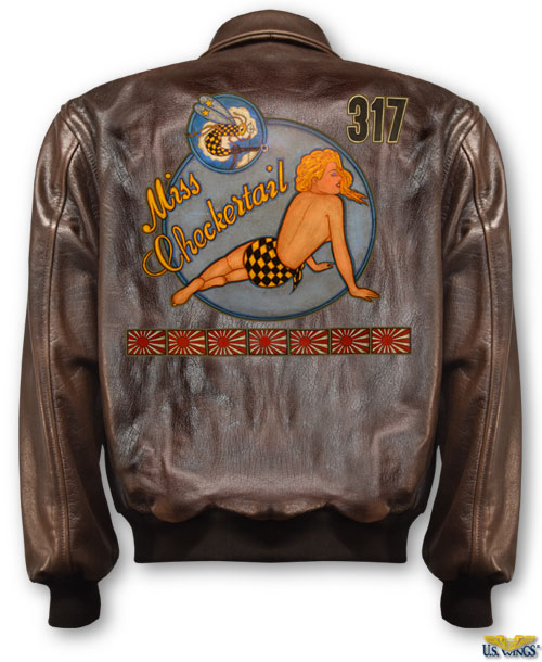 Hand Painted Nose Art Bomber Jackets are now available at US Wings. Jim Harley, world renown custom hand painted jacket artist has joined US Wings. Our custom hand painted Nose Art Bomber Jackets are a collector’s item. They are a great way to show off a WWII nose art, company logo, or any design you like on your leather jacket. We have many famous renderings including the Memphis Belle, Flying Tigers, Miss Checkertail, El Lobo, Special Delivery, Thumper, Shangri La and many others.