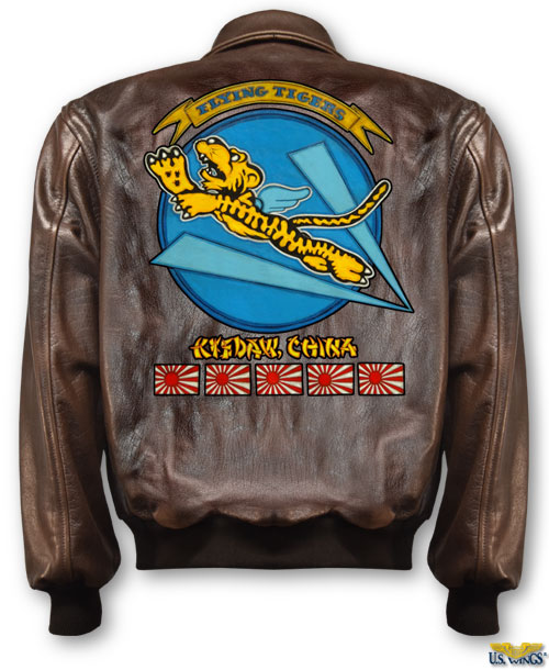 We also have great artwork with the Flying Tigers images. US Wings is proud to have created a special recreation of Dick Rossi’s G1 jacket that is currently on display at the Flying Tigers Museum in China. Dick was a founding member of the Flying Tigers.