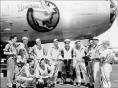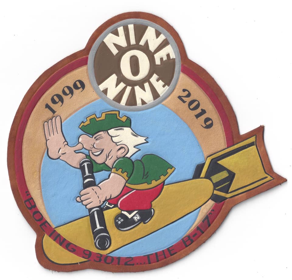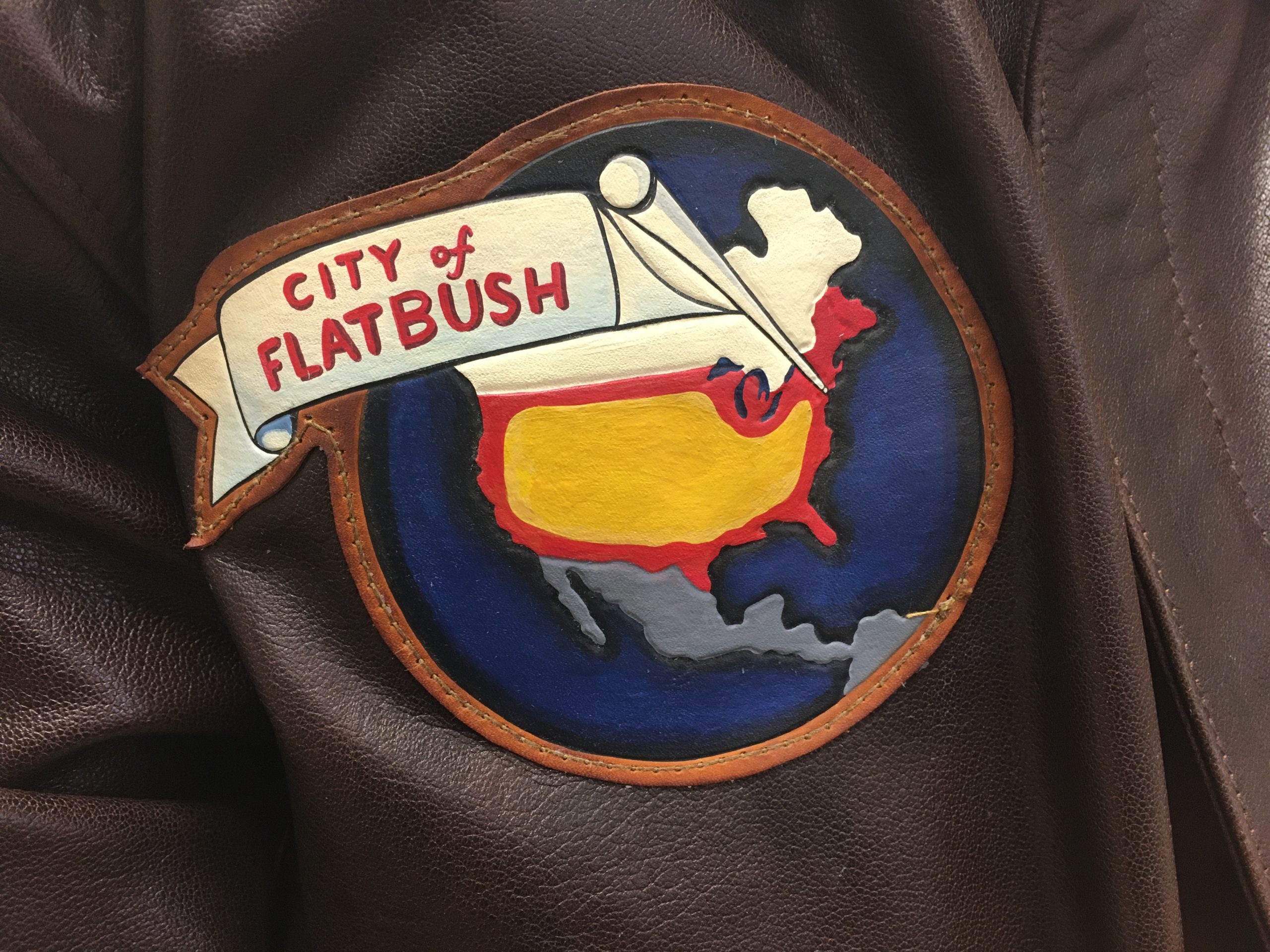 Taking a photograph sent from a customer from North Field Guam, the B 29 “City of Flatbush” nose art has been handpainted on a five inch leather patch.