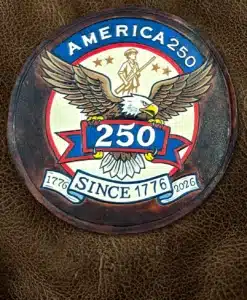 Our outstanding 250th Anniversary Hand Painted Leather Patch celebrates the United States Semiquincentennial, 250 years since the adoption of the Declaration of Independence on July 4, 1776. This anniversary, to be celebrated on July 4, 2026, is more than a commemoration — it’s a moment of reflection on the ideals, struggles, and evolution of the United States across two and a half centuries.