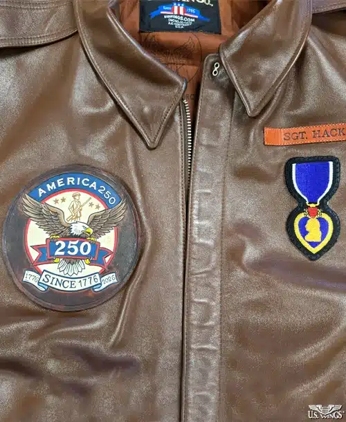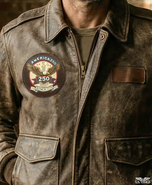 Our 250th Anniversary Hand Painted Leather Patch is made from high quality vintage-finished leather. This handmade leather patch, hand-painted by our resident artist Jim Harley, captures the spirit of America and can be worn with pride on your favorite jacket, hat, bag, or add it to your patch collection. An US Wings exclusive.