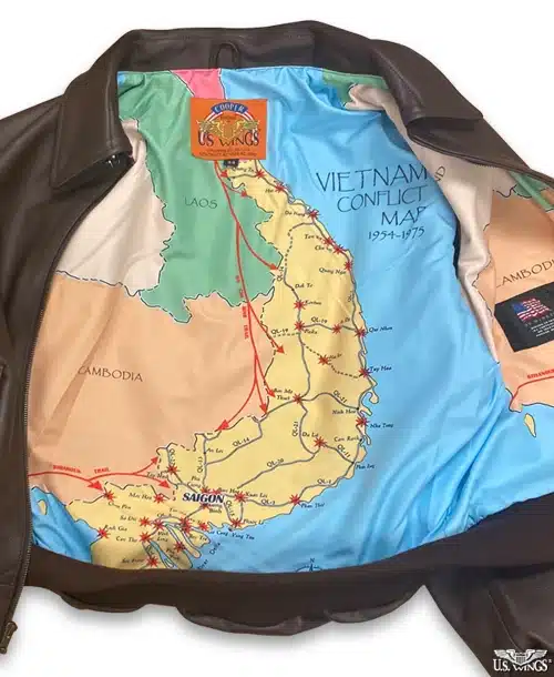 Our Cooper Original® Cowhide Vietnam Map Legacy A-2 Jacket Jacket features our exclusive Vietnam Conflict Map lining as a tribute to all who served during the Vietnam War. Although the A-2 was never worn during the Vietnam War, its overwhelming popularity demanded that we include it in our Vietnam Map series of jackets. First introduced in the early 1930s, the A-2 was an instant classic and saw service on every front during WWII. Although it was discontinued in 1942, there were enough A-2s in the pipeline that it continued to be issued to pilots during the Korean War. Then, after four decades, the A-2 made its triumphant comeback in 1987 and is still being issued to USAF & US Army pilots to this day.