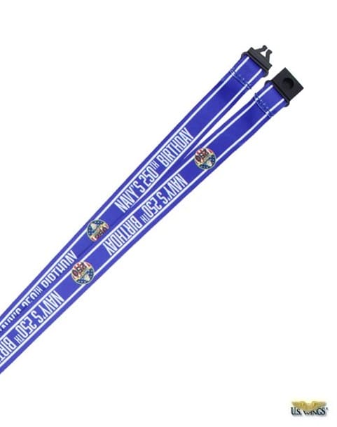 - “Navy 250th Birthday” repeated along the lanyard on both sides
