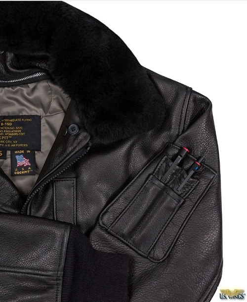 The The Cockpit® USA B-15 Leather Jacket (Black) features: